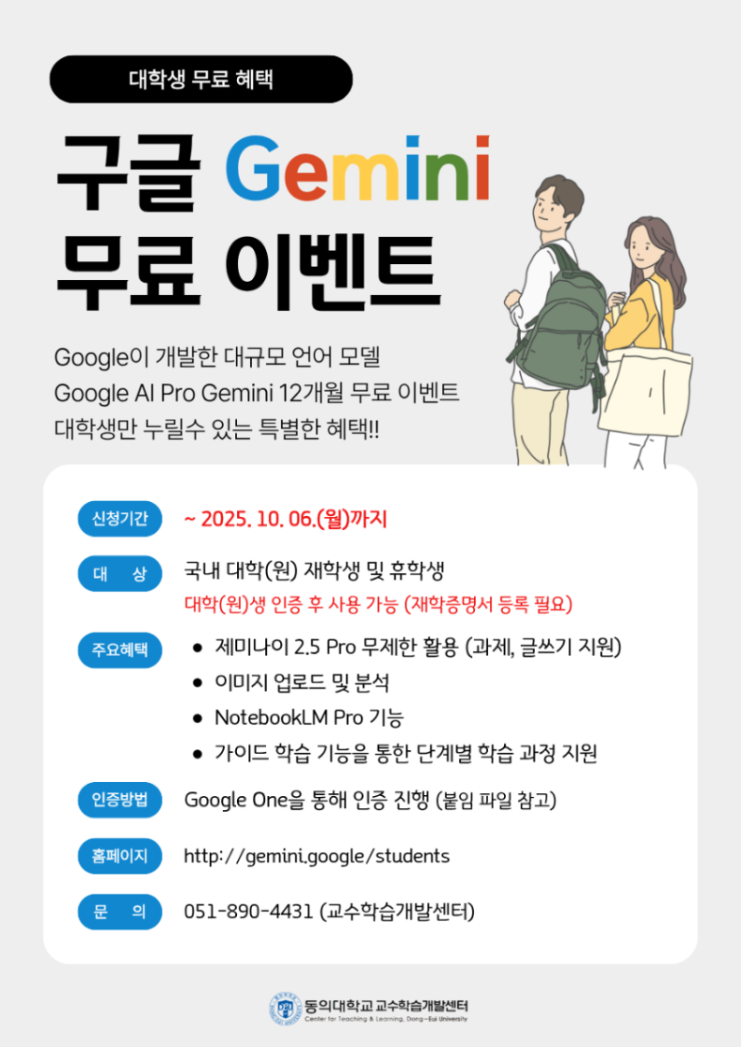 [교수학습개발센터] Google AI Pro Gemini 12개월 무료 이벤트 안내