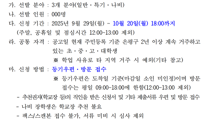 2025년 하반기 서울 은평구민 장학생 선발 안내